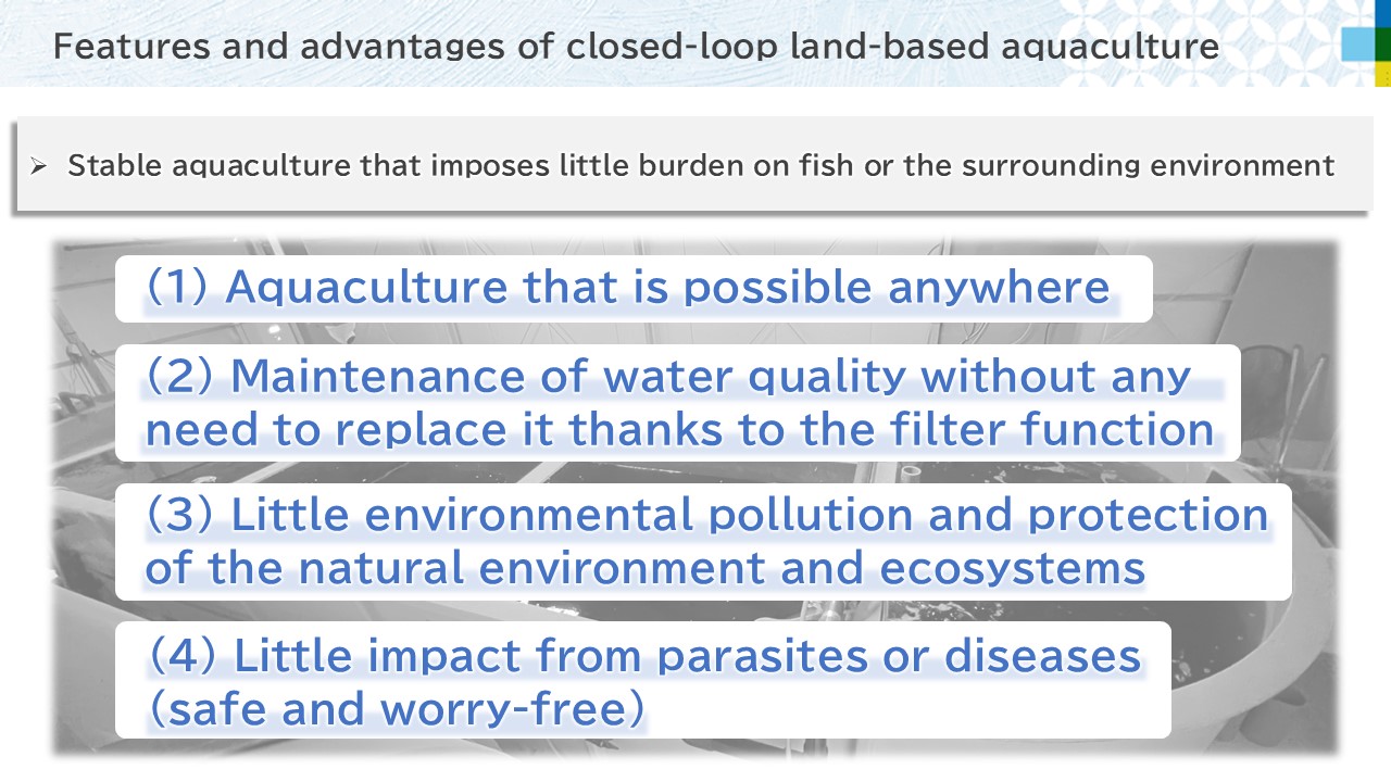 However, there are still issues that must be overcome to spread land-based aquaculture. These include reducing costs and improving consumer awareness.