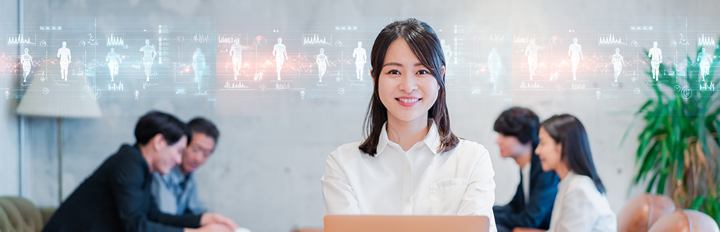 従業員・加入者・住民の健康づくりや子育て・介護支援などの業務を実施されている皆さまを幅広く支えます。これにより健康寿命の延伸をめざします。