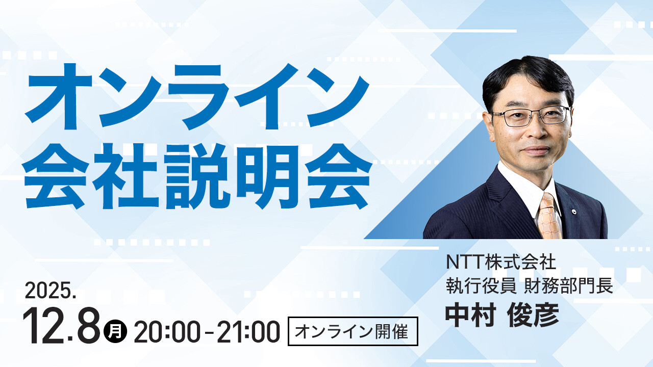 NTTグループの直近の取り組みや今後の成長戦略について、執行役員 財務部門長がオンラインでご説明いたしました。