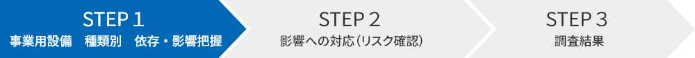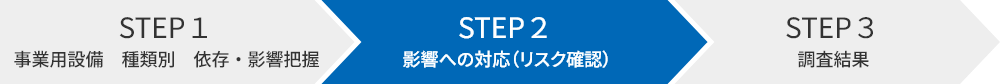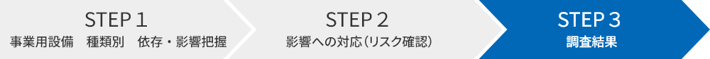 TNFDが推奨するLEAPアプローチに則り、事業用設備を対象に自然関連の影響・依存について分析を 行うために事業用設備の中でも特に売上に与える影響の大きいサービス群を提供する設備に絞り、基地局、 通信設備、データセンター設備での依存・影響を把握した後、リスクの顕在化を確認し評価を行いました。