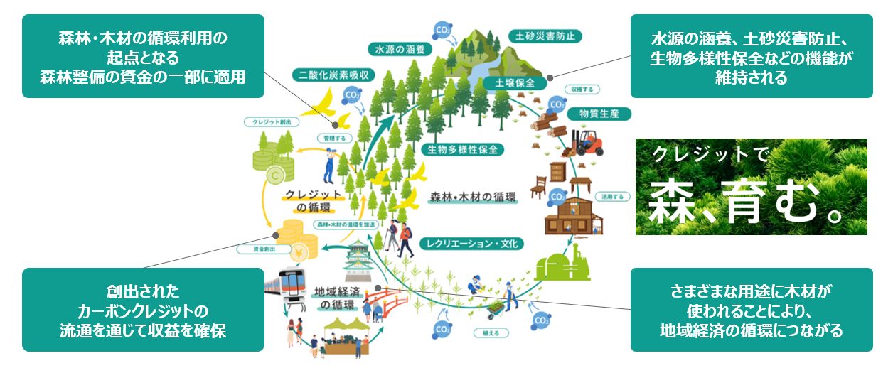 森林由来のカーボンクレジットを活用することで、森林や木材を循環利用できる