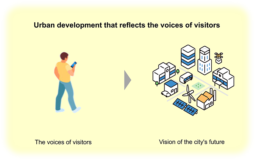 In the urban development envisioned by the NTT Group, “enabling visitors to enjoy more facilities (improving mobility)” and “creating and nurturing cities together with the people who live, work, and gather in the city” are important themes.
