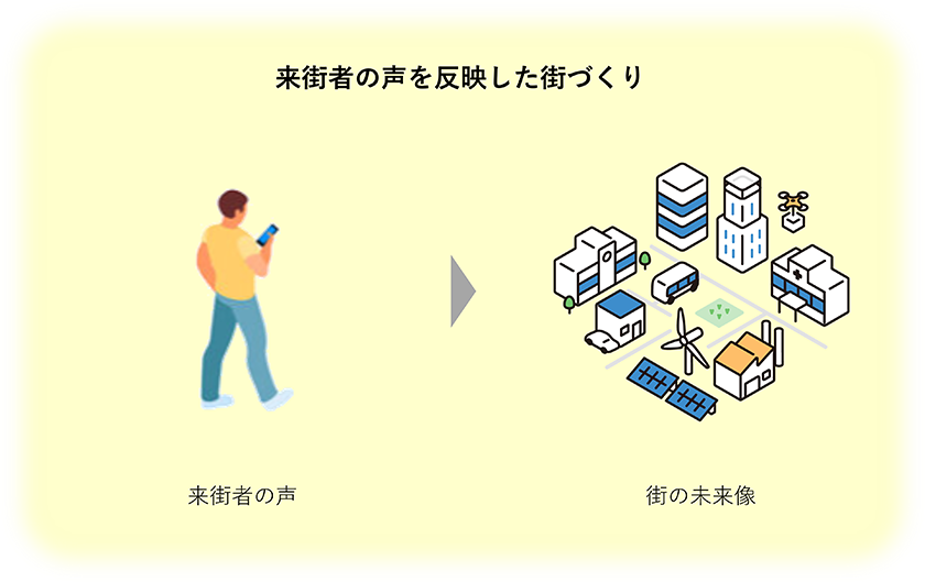 NTTグループが考える街づくりにおいて「来街者により多くの施設を楽しんでいただくこと(回遊性の向上)」及び「地域住民と共に創り育てる街づくり」は重要なテーマです。