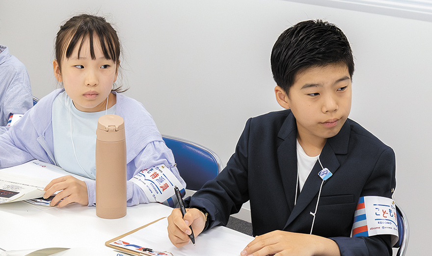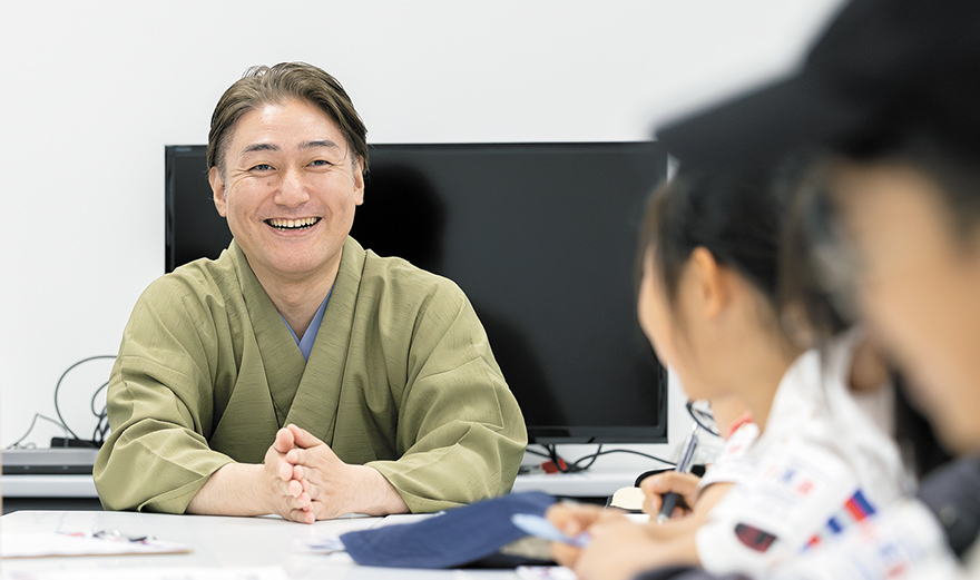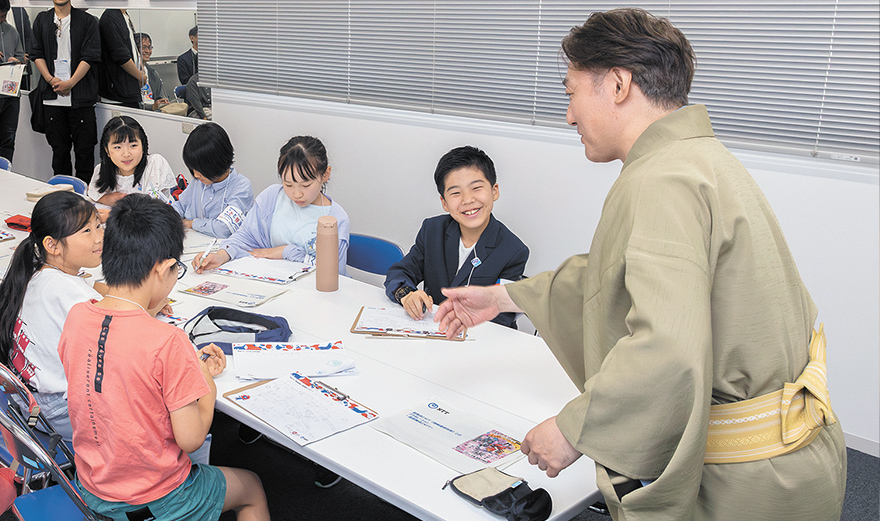 江戸時代から400年以上続く歴史や、正義が悪を倒す物語、すべて男性が演じることなど、歌舞伎の特徴について分かりやすく解説してくれました。特派員たちが熱心にメモを取り、積極的に質問する姿に感銘を受けた精四郎さんは、一つひとつに丁寧に答えてくれました。最後は、歌舞伎俳優を屋号で呼ぶ掛け声「大向う」の練習も。特派員たちは精四郎さんの屋号「紀伊國屋」を元気よく呼びかけ、歌舞伎の雰囲気を体験しました。