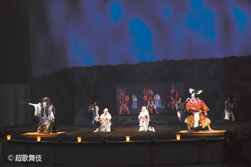超歌舞伎とは、歴史ある歌舞伎を発展させてきた松竹、ニコニコ動画などでサブカルチャーをけん引してきたドワンゴ、通信技術をリードしてきたNTTの3社が、それぞれの強みを活かしリアルとバーチャルを組み合わせて作り上げた全く新しい歌舞伎演目。