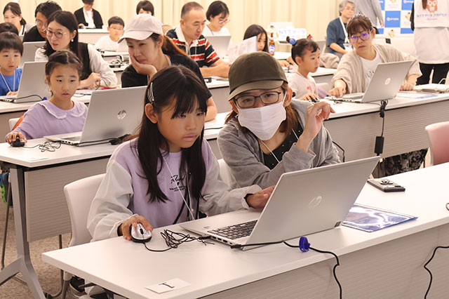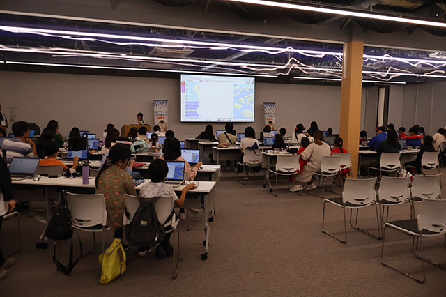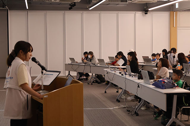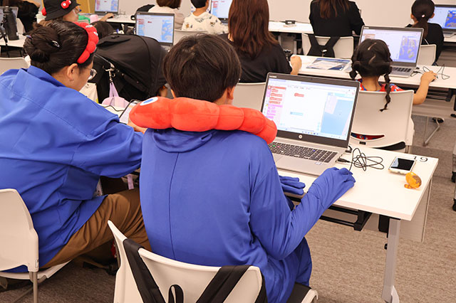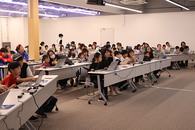 プログラミング体験は、大阪・関西万博会場内にある多目的スペースEXPOサロンで行いました。