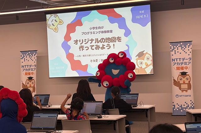 NTTデータ アカデミアは2020年度から実施しているIT教育プログラムで、NTTデータと国内グループ会社がともに、小学生にプログラミングやITのしくみを伝える活動を展開しています。