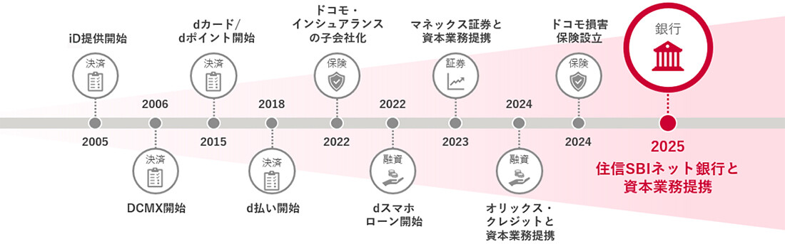 2025年10月1日より、住信SBIネット銀行がこれまで提供してきた個人および法人のお客さま向け銀行サービスを、ドコモグループの銀行としての新たなサービスブランド「d NEOBANK」のもと、住信SBIネット銀行が提供していきます。今後は、dポイントや「d払いR」「dカードR」などのドコモのサービスと、住信SBIネット銀行の銀行口座などのサービスとの連携を推進し、スマートフォンひとつで貯蓄・決済・投資・保険・融資・ポイントサービスまでワンストップで利用できる、さらに便利でおトクな金融サービスをお届けしていく予定です。
